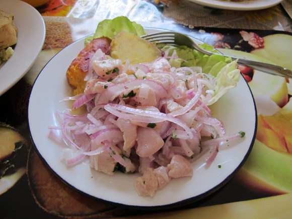 the above is a little peru 19 “inside joke” from staging, but last sunday i did get to indulge in my first helping of ceviche. if you know me, then you know this is a big step forward for me, as i am not a seafood person. the good news is that there was enough raw onion to over power any fish flavor and that i love raw onions…and i didn’t get sick from it.