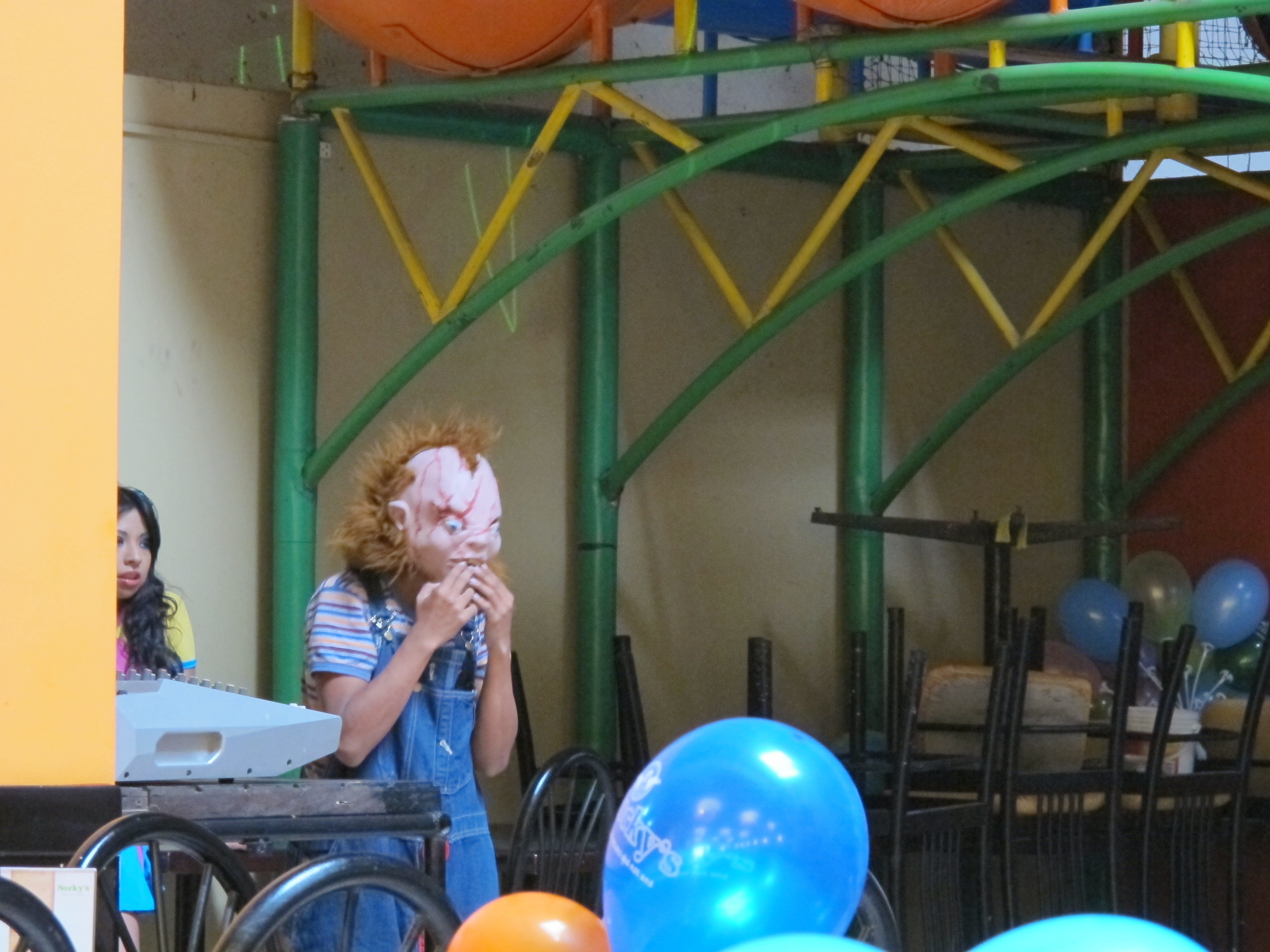 yesterday, my family and i made a special outing to chosica for lunch. we got pollo a la brasa at a peruvian chain, norkey’s. honestly, it was fantastic. in fact, the food left for full for the rest of the night. while there, there were some clowns performing (peruvians love their clowns). in the background, i could hear them announcing that their clown friend “chooky” was going to join them…come to find out that what they were trying to say was “chuckie.” you know, from the horror film franchise that never ends? anyways, they had “chooky” (a kid in a clown costume wearing a “chuckie” mask) going around the restaurant handing out balloons to all the kids. surprisingly, i was the only person in the restaurant bothered by this…my family got a kick out of it though.