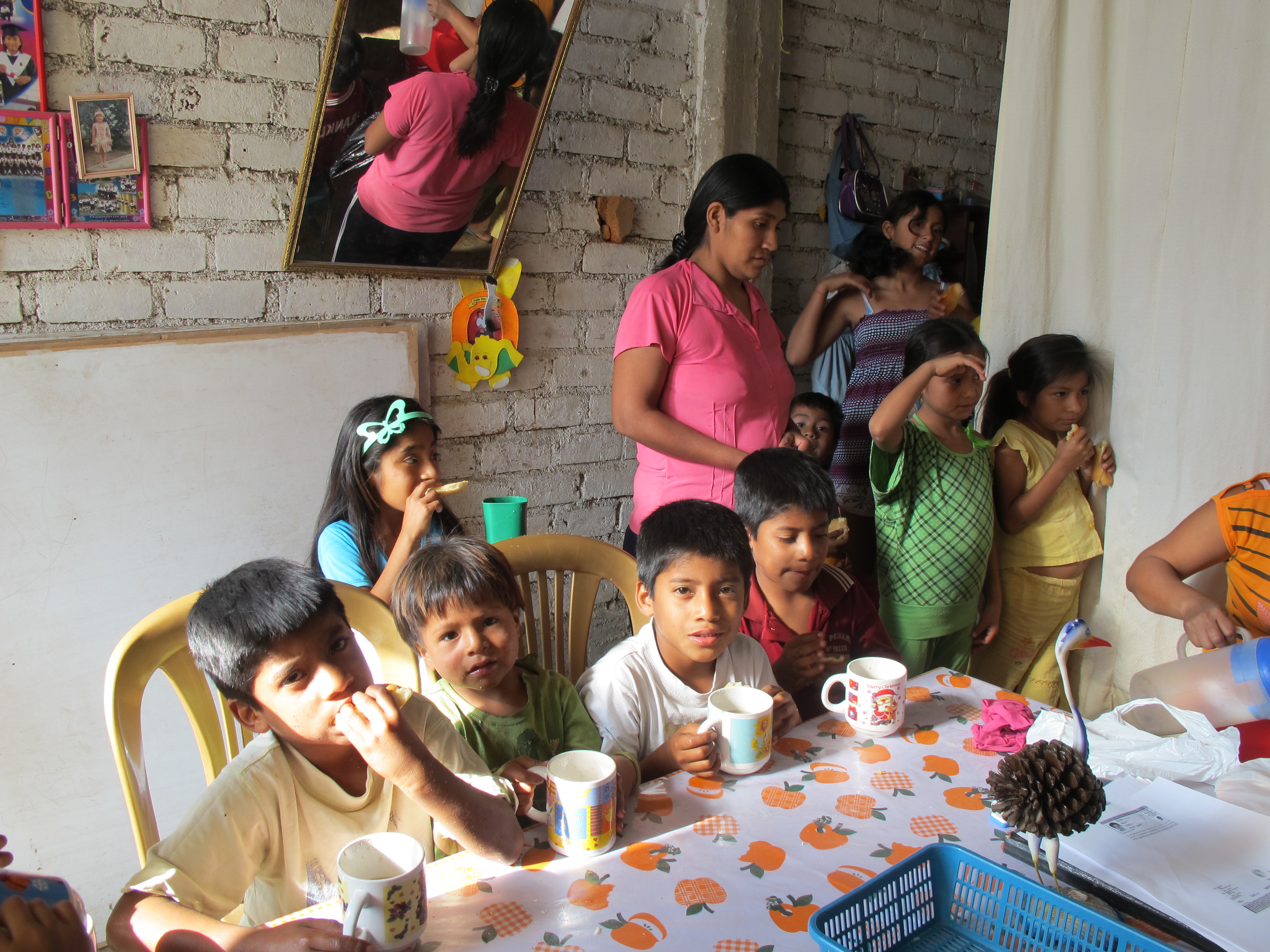 the head of the organization in my community, karla, was anxious to start introducing me to a post. she has offered to take me to all of the caserios to see the posts out there as well. once i have bike, it will be much easier to visit the caserios as well. today, we went to a local one in tucume, where they provided a free afternoon snack (a porridge-type drink and a roll w/ butter) to kids. all-in-all about 15 kids showed up.
